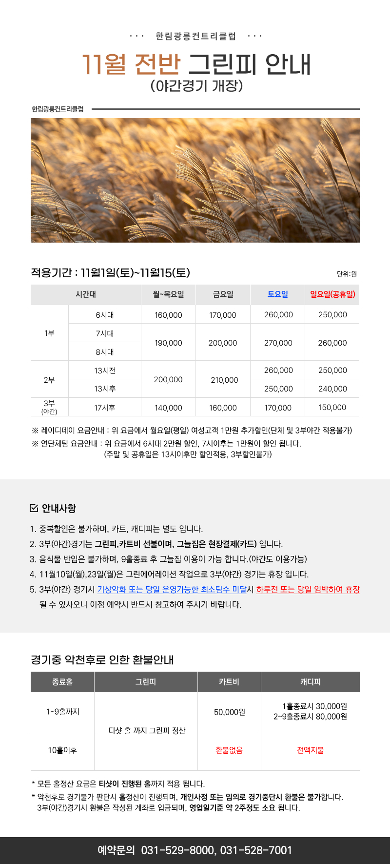 [11월전반] 요금 및 운영안내