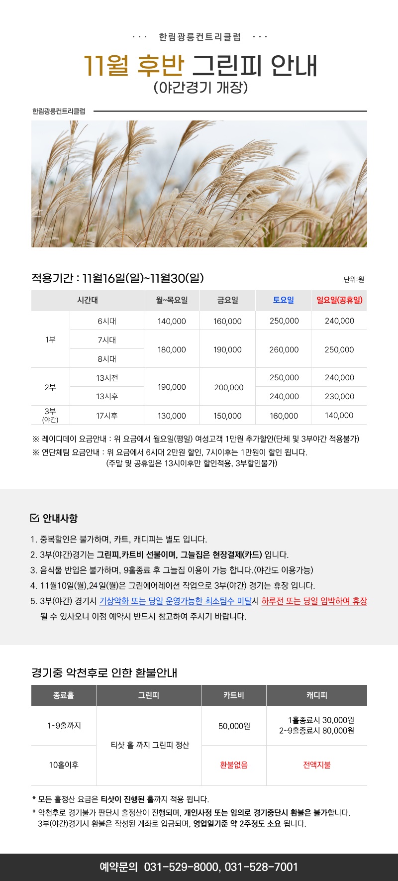 [11월전반] 요금 및 운영안내